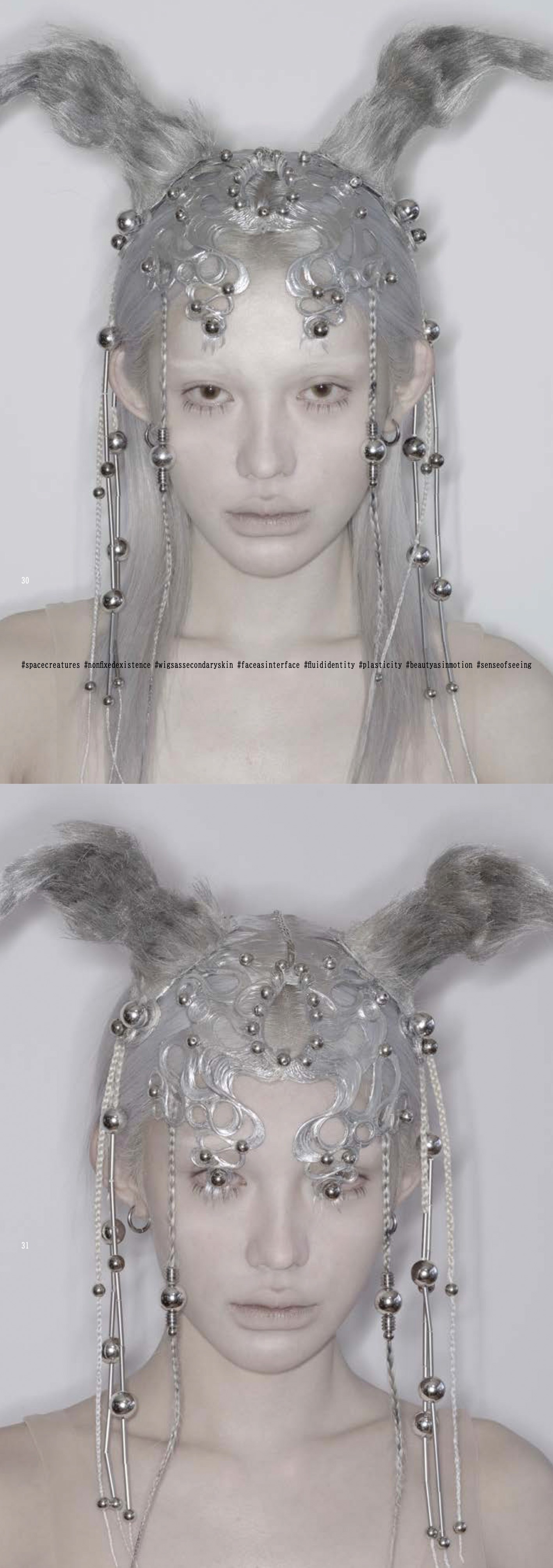 > Wigs as secondary skin. Our faces are already interfaces-into a new realm.