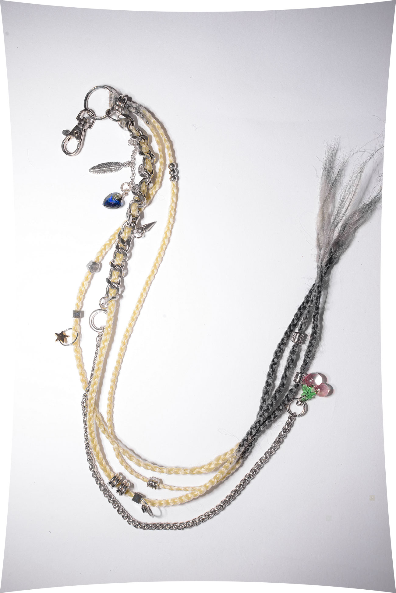 Fancy Necklace + Key Chain [pink cherry🍒] [Tomihiro Kono x Marland Backus] Material: Synthetic hair / Metal Charms from Marland Backus